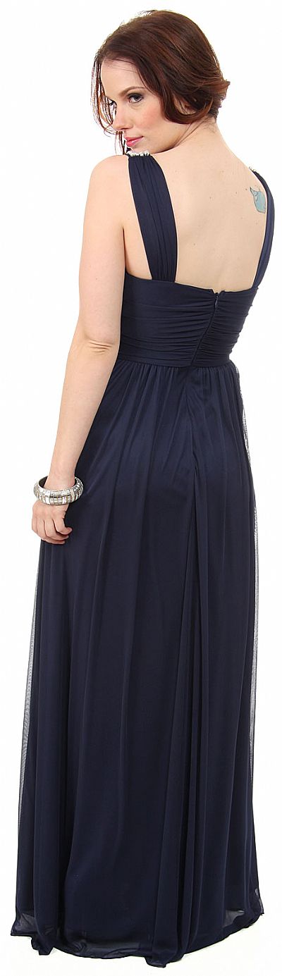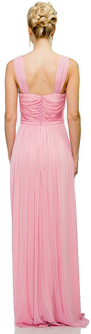 | PEARLS U-NECK RUCHED LONG FORMAL BRIDESMAID DRESS (item #11392)