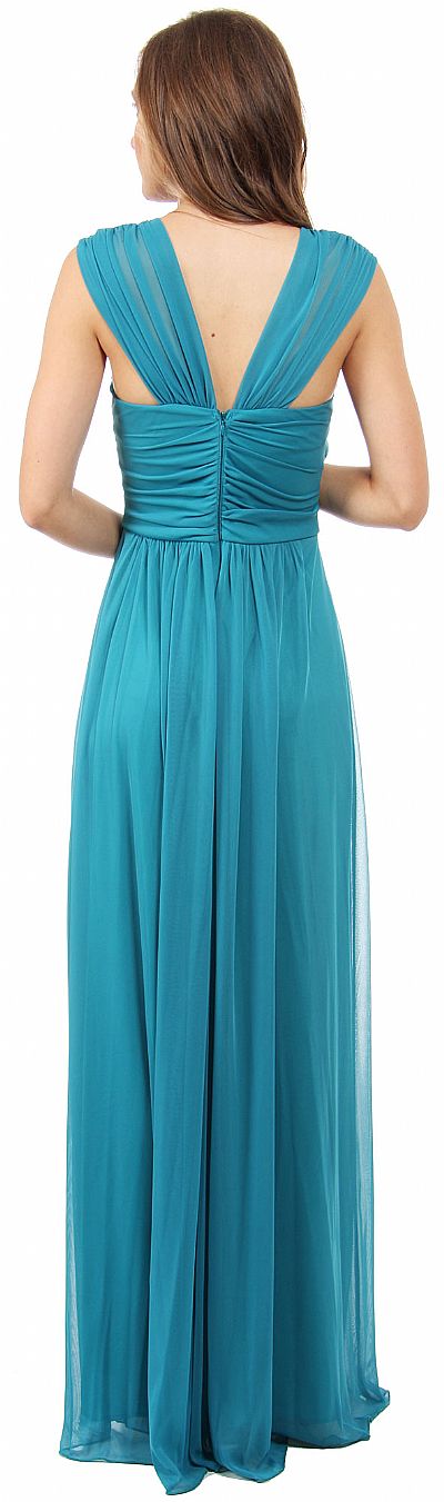 | SCOOP NECK BROAD STRAPS SHIRRED LONG FORMAL BRIDESMAID DRESS (item #11469)