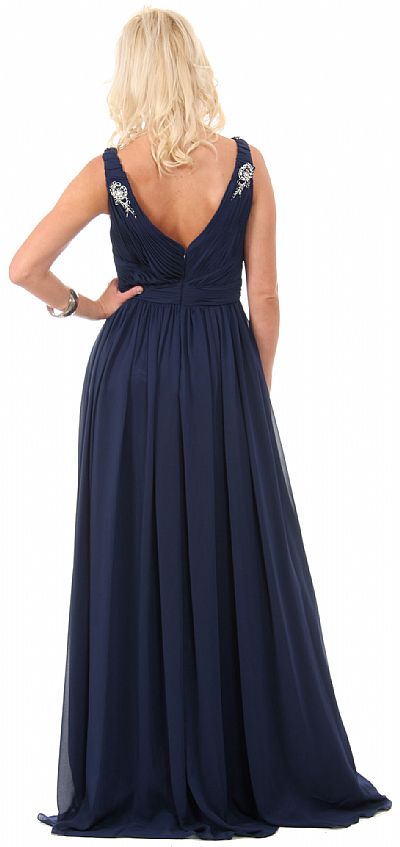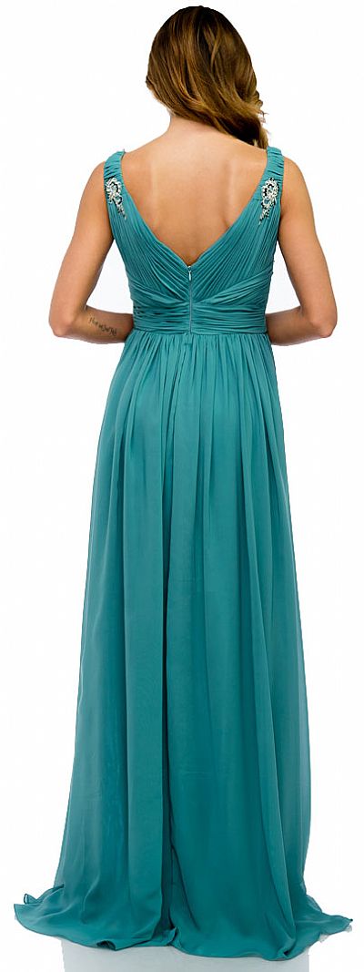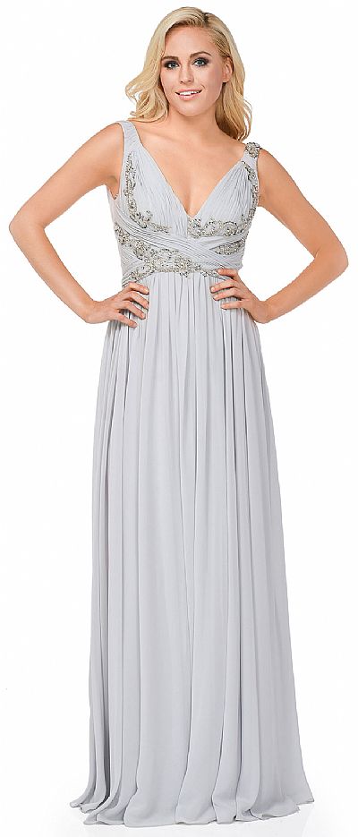| DEEP V-NECK RUCHED FLOOR LENGTH FORMAL PROM DRESS (item #16111)