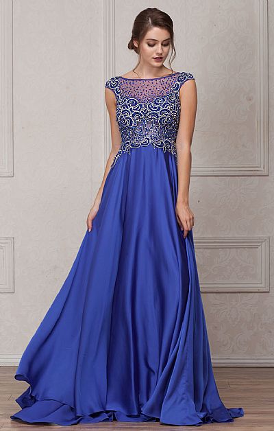 Embellished Sheer Bodice Poly Satin Long Prom Dress. Boat neckline sheer mesh bodice has an alluring pattern in sequins, beads & lace. Pleated poly satin floor length skirt adds glamour to this formal prom pageant dress. Sheer mesh back with sequins & zipper closure too. Imported.