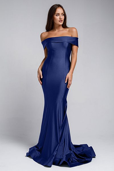 OFF SHOULDER FITTED PROM GOWN (item #a373)