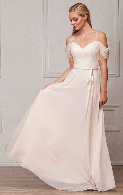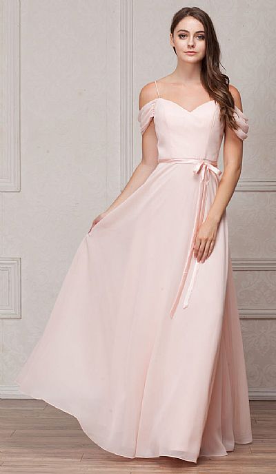 SPAGHETTI STRAPS COLD-SHOULDER LONG BRIDESMAID DRESS (item #a824)