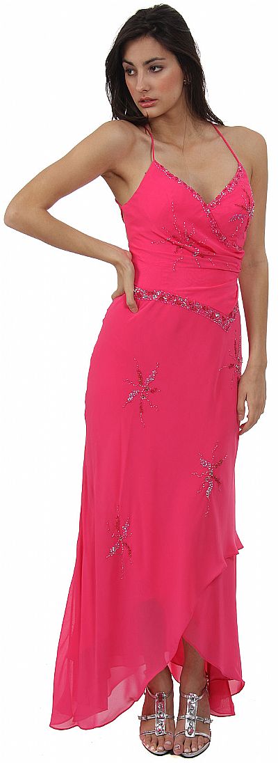 | SPAGHETTI FORMAL PROM DRESS W/ CRISS-CROSSED BACK (item #c27326)