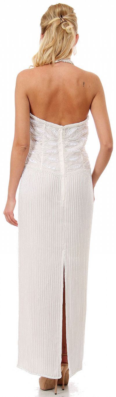 Halter V-Neck Leafy Bodice Beaded Long Formal Dress back