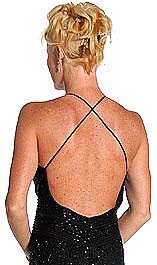 Spaghetti strapped fully beaded dress with an open back; with criss-crossed back.