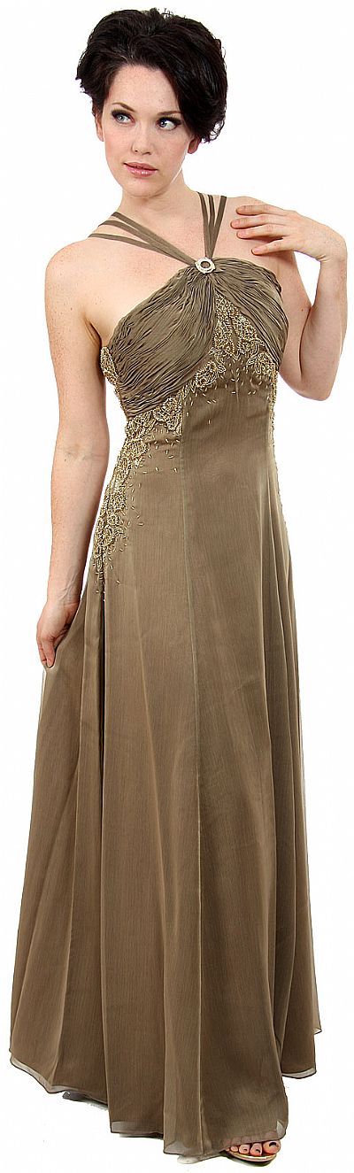 | HALTER NECK TRIPLE STRAPS A-LINE LONG FORMAL DRESS (item #11057)