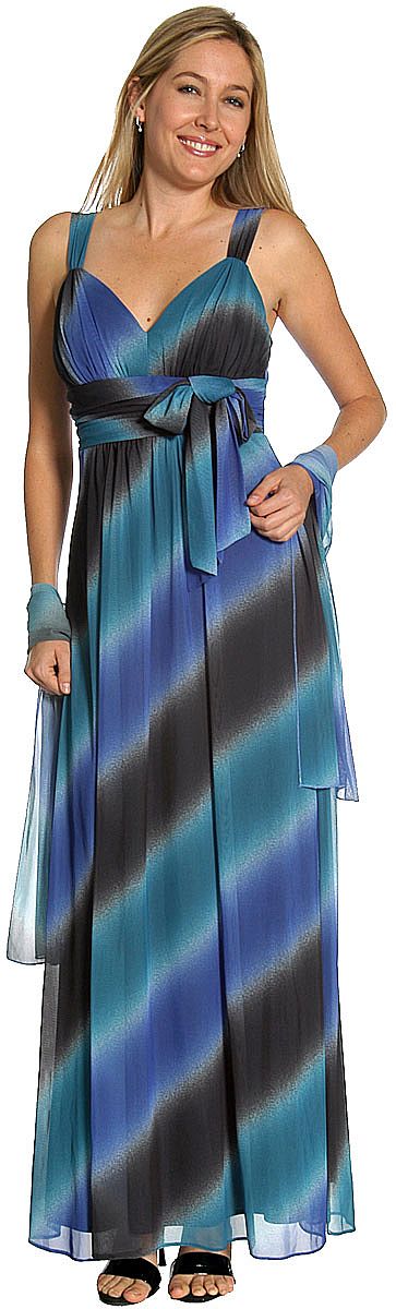 Formal sun dress with diagonal design. The dress has a ribbon bow design on the side waist.
