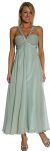 Tea Length Empire Cut Formal Cocktail Dress with Satin Straps. Decorative satin straps make a v-neck & border the shirred bust. Little rhinestones on adjustable straps. Back also shirred with zipper closure. Silk chiffon with polyester lining. Imported.