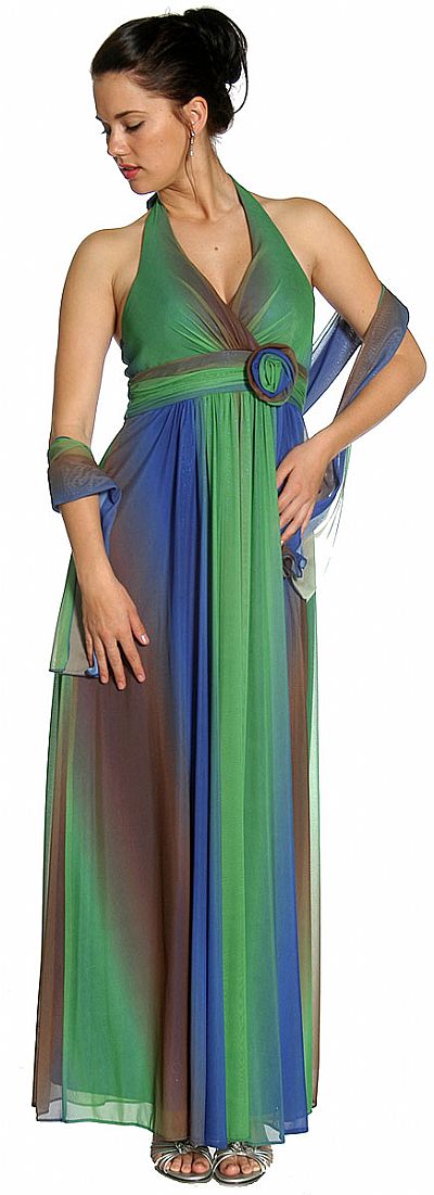 | MULTI COLORED HALTER NECK FORMAL EVENING DRESS (item #11186)