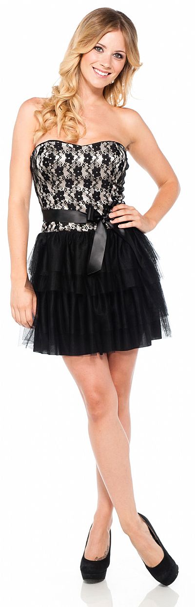 | STRAPLESS LACE BUST SHORT PARTY DRESS WITH TIERED SKIRT (item #11347)