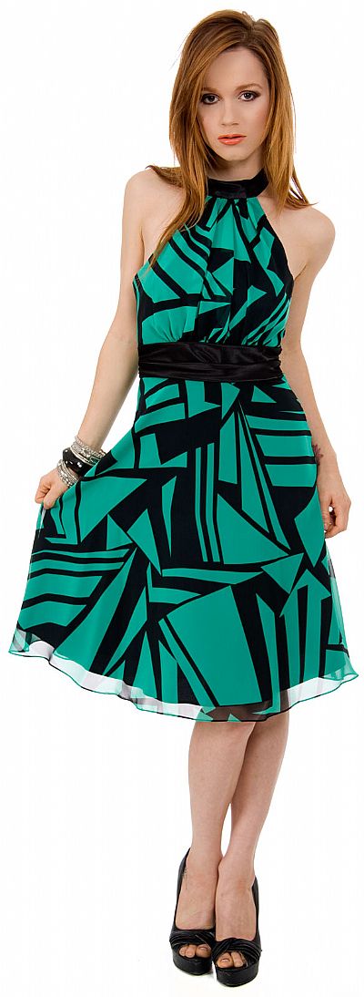 | HALTER NECKKNEE LENGTH DRESS IN GEOMETRIC PRINT (item #11354)