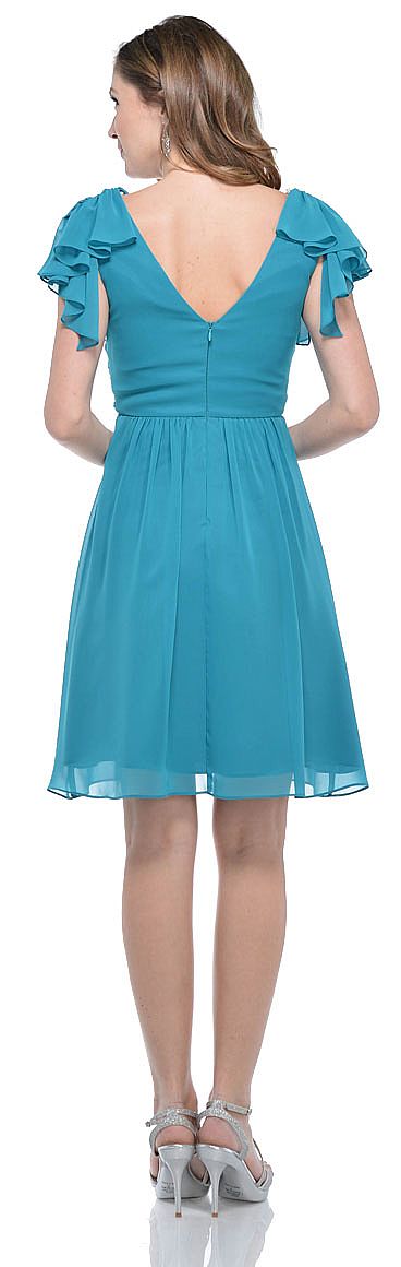 | WRAP STYLE SHORT PARTY DRESS WITH RUFFLED SLEEVES (item #11370)