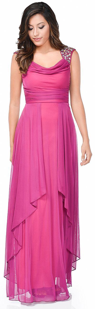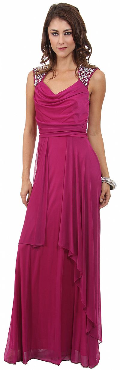 | BROAD STRAPS COWL NECK LONG FORMAL DRESS WITH DRAPED SKIRT (item #11391)