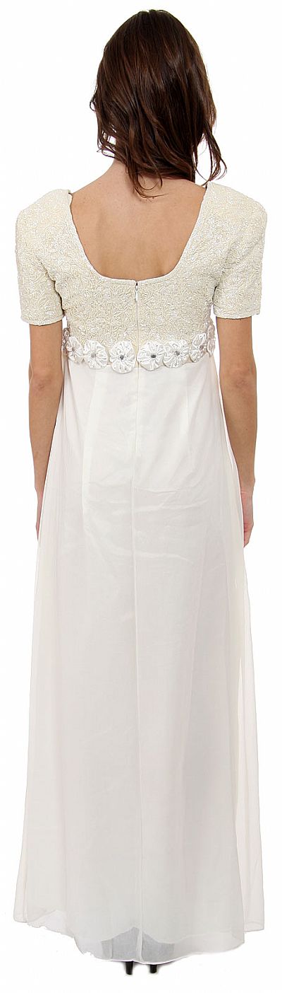 Floral Waistline Detail Short Sleeved Long Formal Gown back