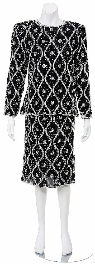 FLOWING LINES HAND BEADED/SEQUINED TWO PIECE DRESS