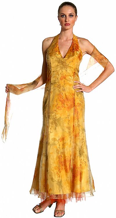 Main image of Double-Layered Halter Neck Printed Formal Dress