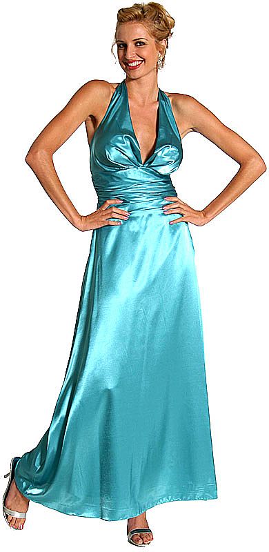 | HALTER NECK POLYSATIN LONG FORMAL DRESS (item #13730)