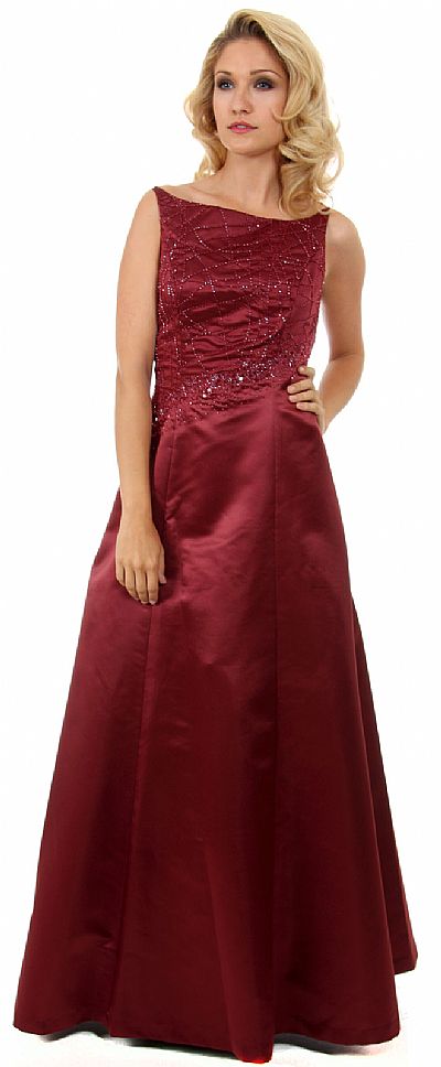 | BOAT NECK A-LINE BEADED CLASSIC FORMAL PROM DRESS (item #17274)