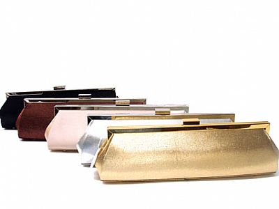 Metal frame solid color satin evening bag. Measurements: 11 x 3.5 x 2 inches.