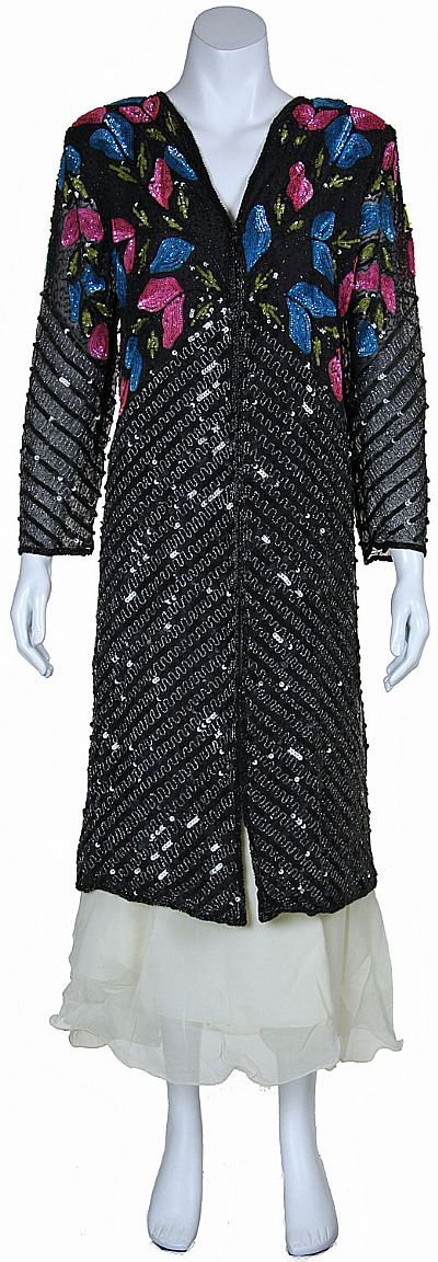 Main image of Long Beaded Jacket with Multi-colored Sequined Pattern