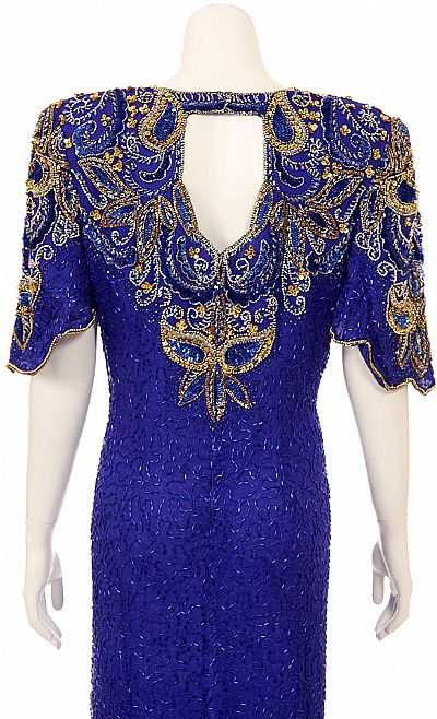 Half Sleeve Full Length Beaded Gown with keyhole back. back