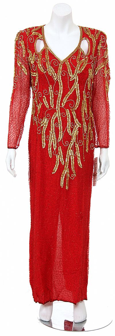 LEAF DESIGN SEQUIN BEADED FORMAL GOWN