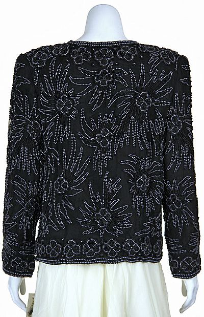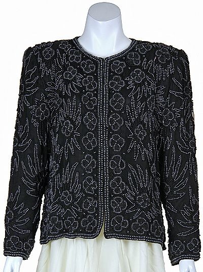 Round neck Full Sleeves Beaded Jacket with Hook Closure. Floral beaded pattern all over the jacket in round small pearls. Imported.