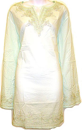 Hand beaded long sleeve above the knee tops. All occasion top that can be perfectly matched with your pants, trousers or skirts. Approximate measurements are length 25 inches, chest 36 inches, sleeves 20 inches. Imported. Made of 100% cotton.