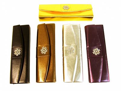 METALLIC EVENING BAG WITH RHINESTONES BROCH