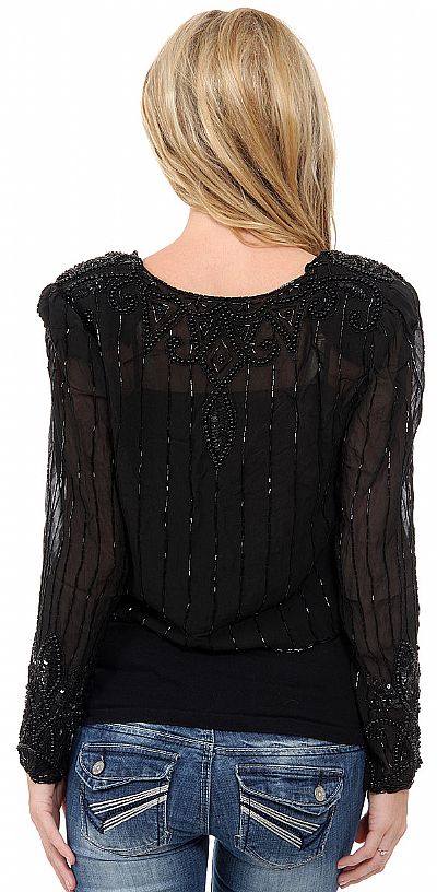 V-neck Short See-through Beaded Jacket   back