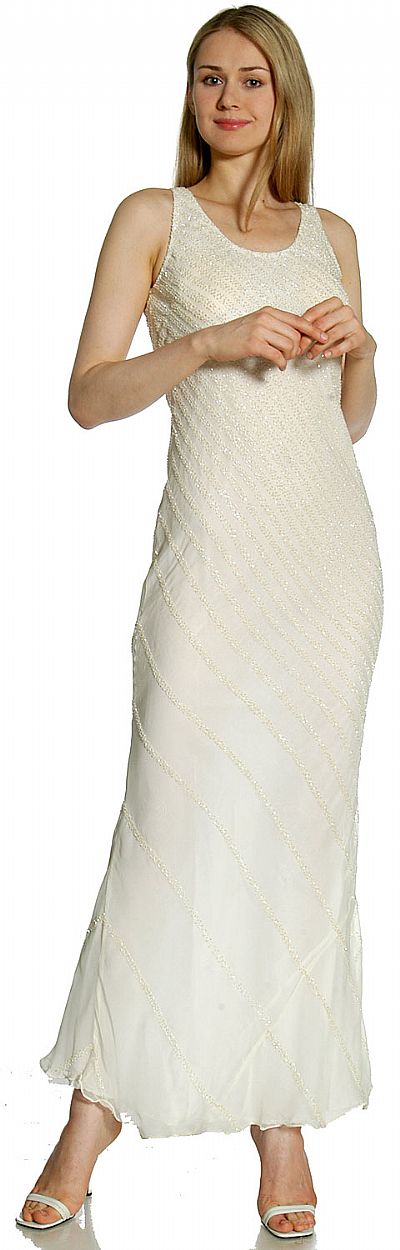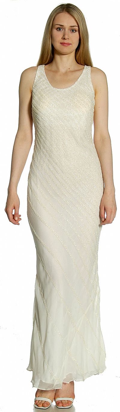 Broad Strapped Cascading Beads Formal Evening Dress in Ivory alternative view