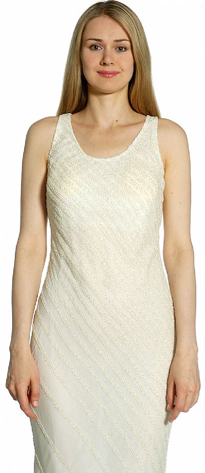 Broad Strapped Cascading Beads Formal Evening Dress in Ivory closeup