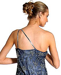 One Shoulder Shimmering Dress with Beaded Flower Patterns back