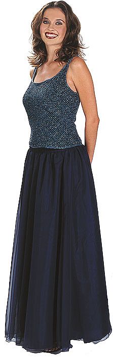 This tank-top is fully hand-beaded on 100% natural silk chiffon, 100% polyester lining. Skirt is sold separately.