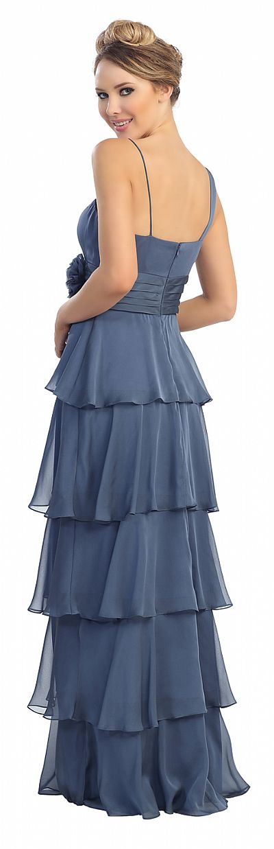 One Shoulder Tiers & Ruffles Long Formal Evening Prom Dress back