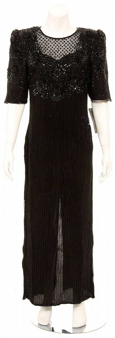 FLORAL DESIGNED FULLY SEQUINED EVENING GOWN