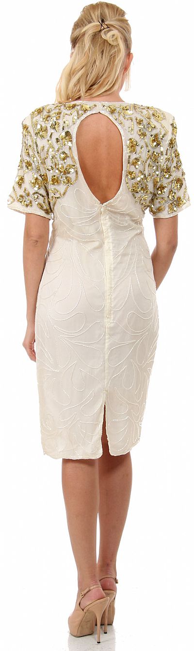 Jacket Style Sequins Knee Length Formal Beaded Dress back