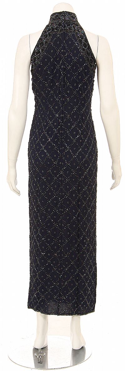 Turtle Neck Beaded Bodice Sequined Formal Dress back