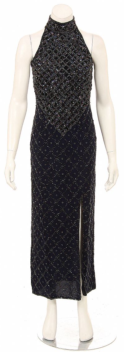 TURTLE NECK BEADED BODICE SEQUINED FORMAL DRESS