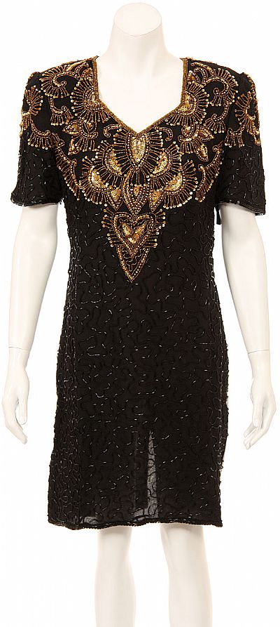 V-NECK SHORT BEADED COCKTAIL DRESS