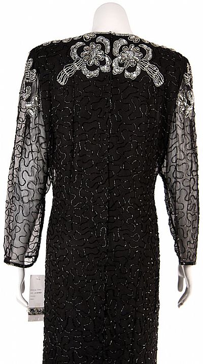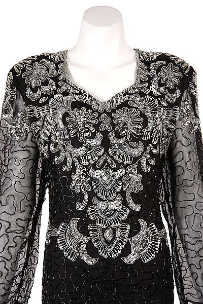 Fully Beaded Tea Length Cocktail Dress in closeup