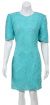 Short dress embellished with hand beaded and sequined floral embellishments. Dress is short sleeved and shoulder padded. Beaded jewel neckline. Key-hole back with hook closure at the back of the neck. Back zipper closure. Small slit in the back . 100% silk with polyester lining. Imported.