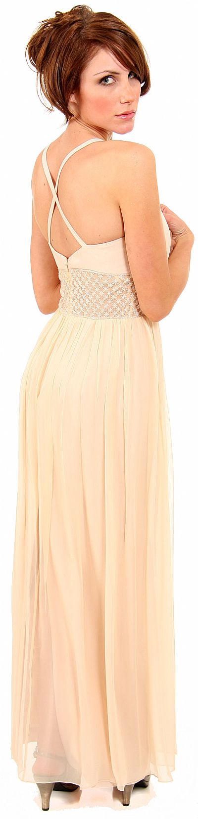 Long Formal Dress with Crossed Back & Beaded Belt  back