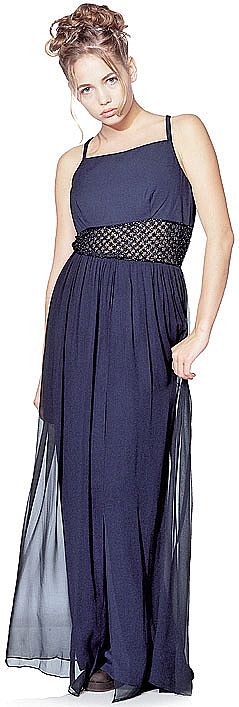Long Formal Dress with Crossed Back & Beaded Belt  in Black Nite