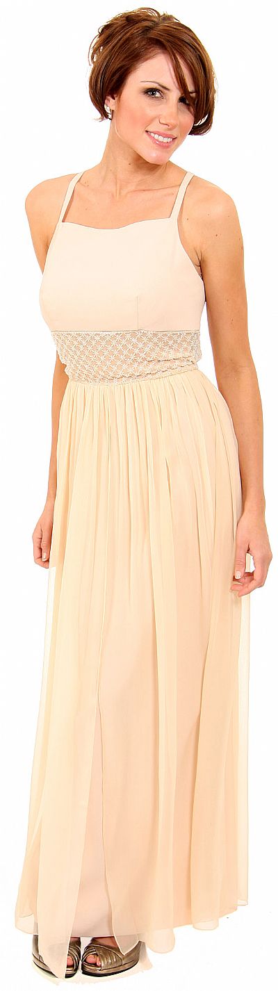 Main image of Long Formal Dress with Crossed Back & Beaded Belt