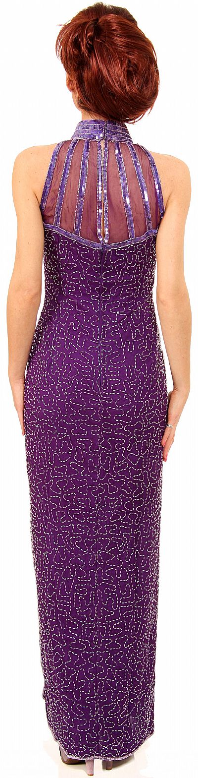 Sequin Beaded Sheer Halter Neck Cocktail Dress back