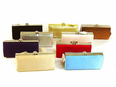 METAL FRAME SHINY SATIN EVENING BAG