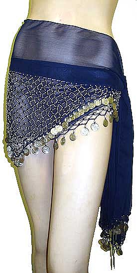BELLY DANCER BEADED HIP SCARF (NAVY/SILVER)