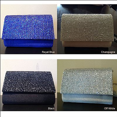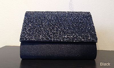 Rhinestones Pattern Small Evening Bag in Polyester Satin Material. The flap opening in front has shiny rhinestones all over it. Imported.