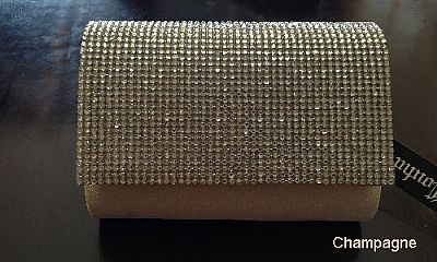 Rhinestones Flap Evening Bag in Polyester Satin in Champaign